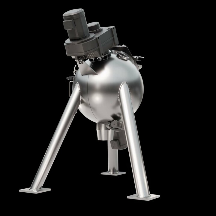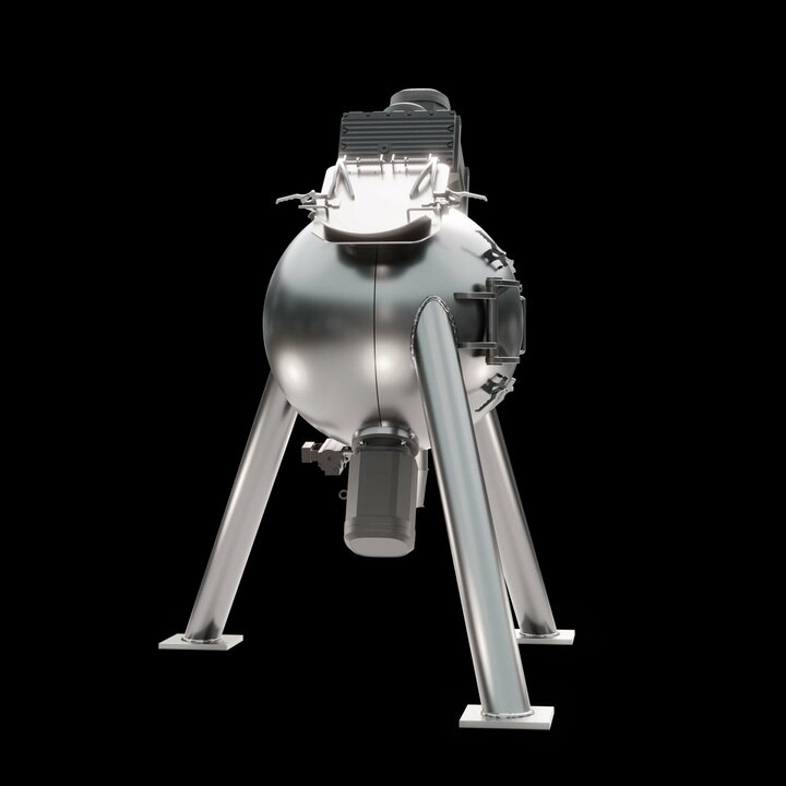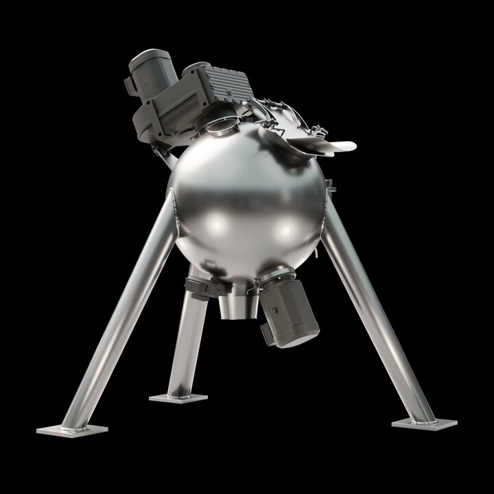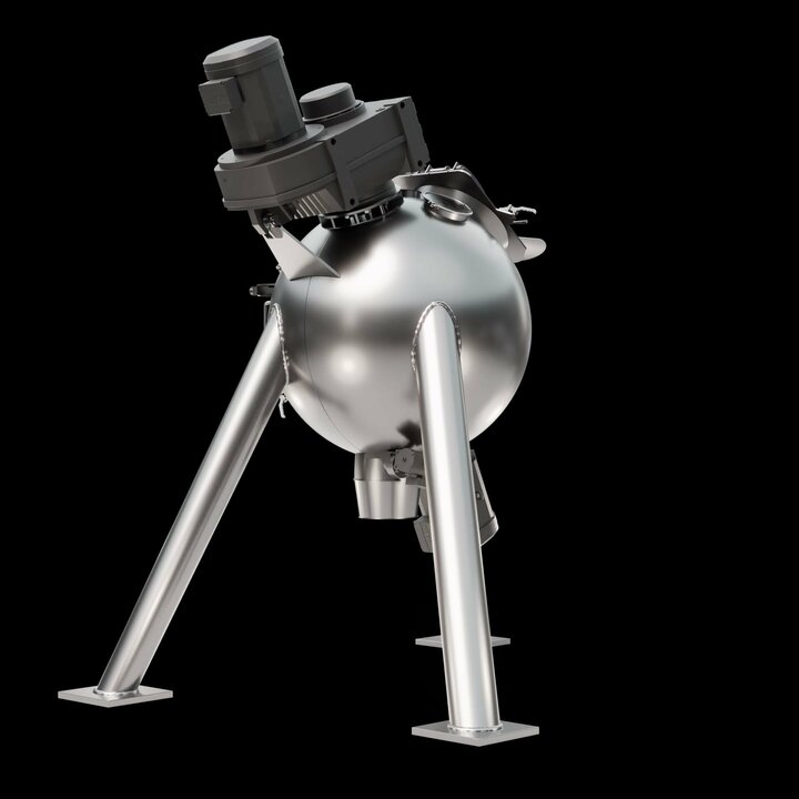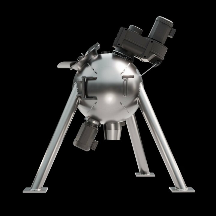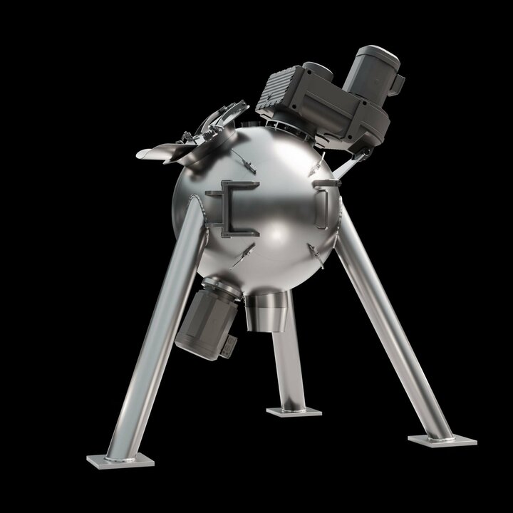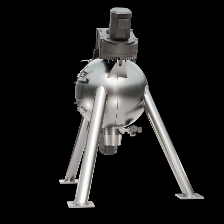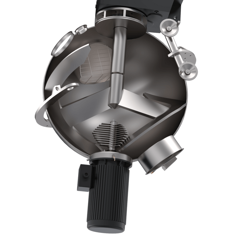 Spherical mixing chamber: The spherical design offers a reduced surface area, which minimises friction and enables shorter mixing times. This results in lower energy consumption and increases the efficiency of the mixing process.