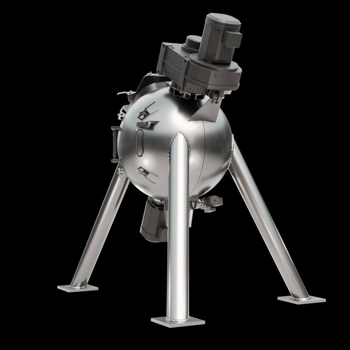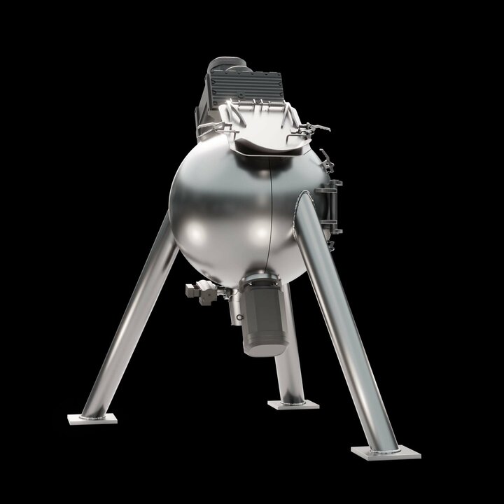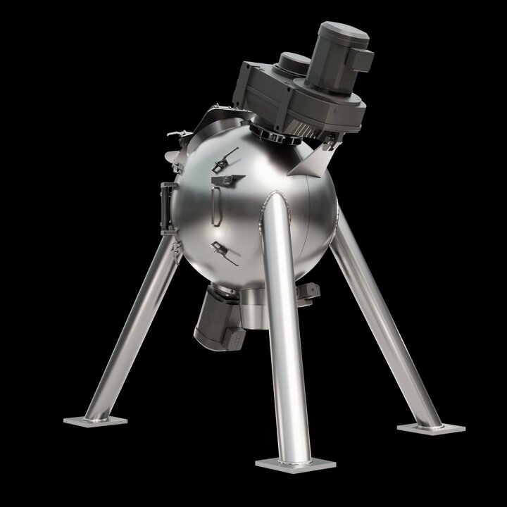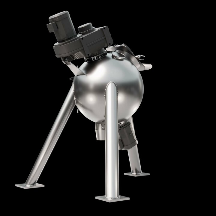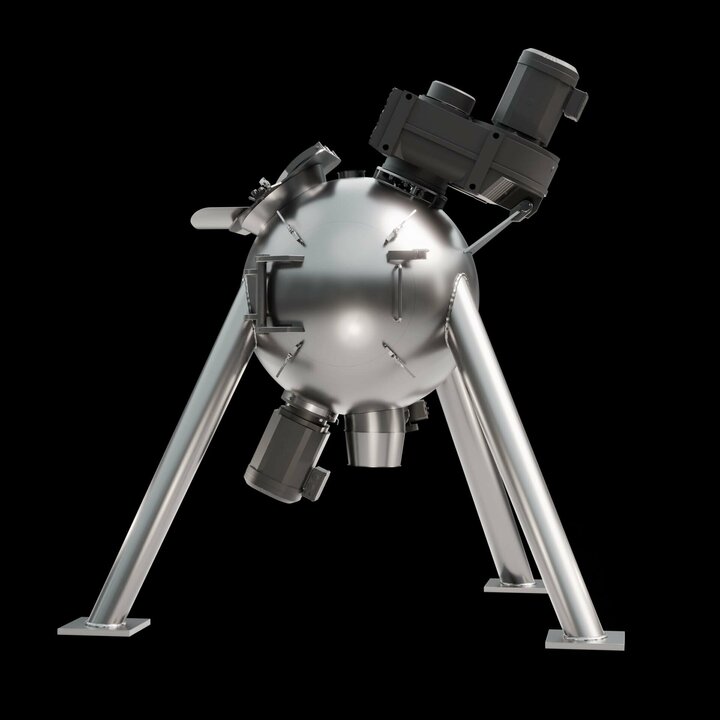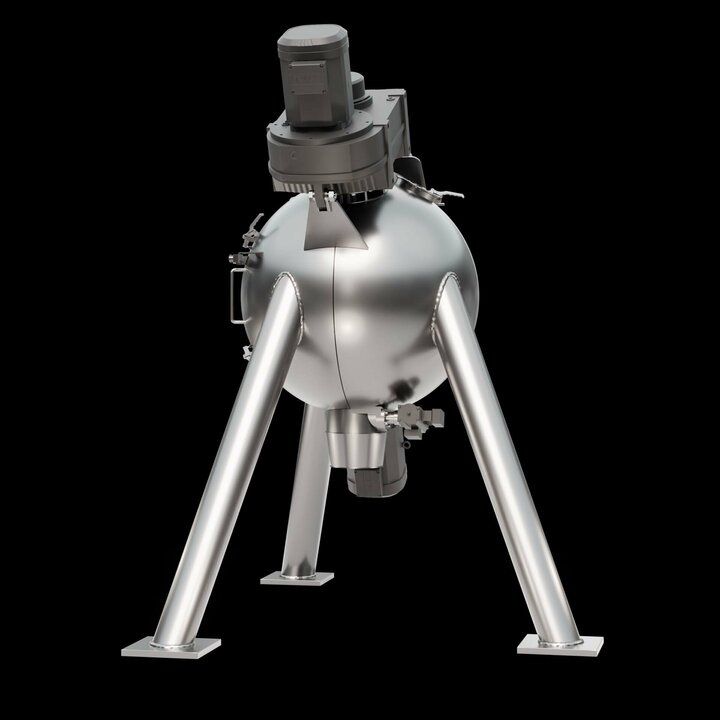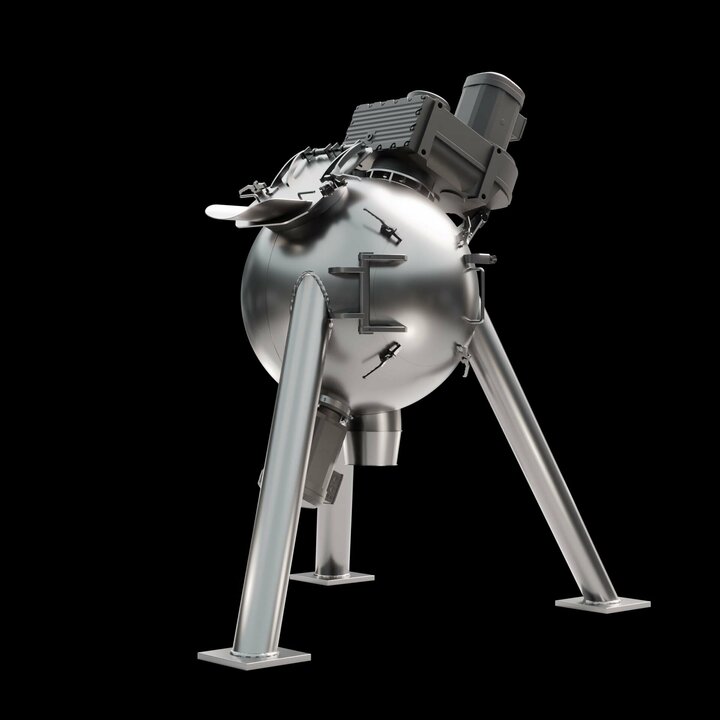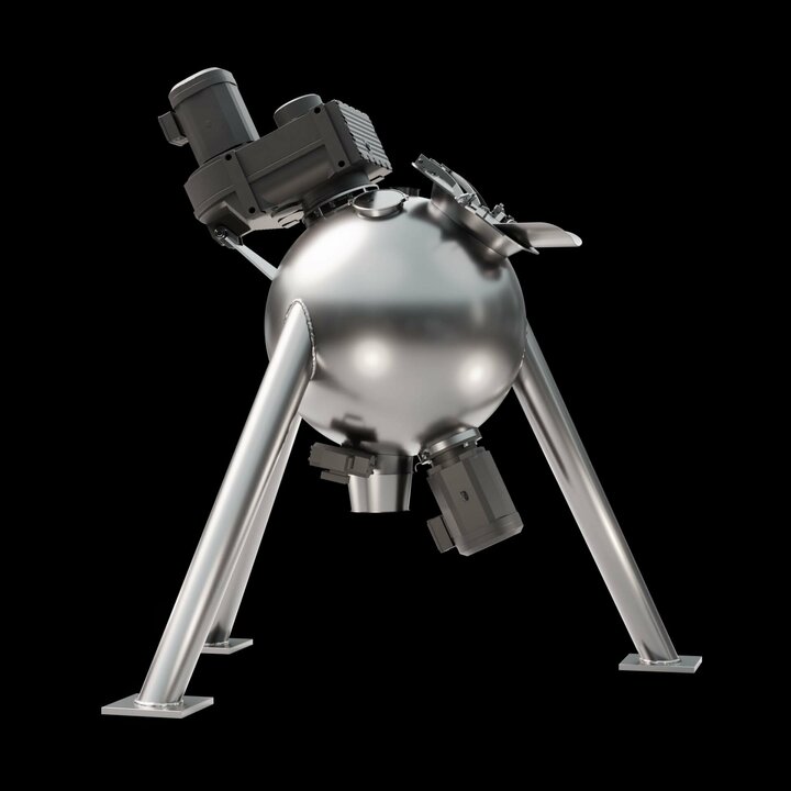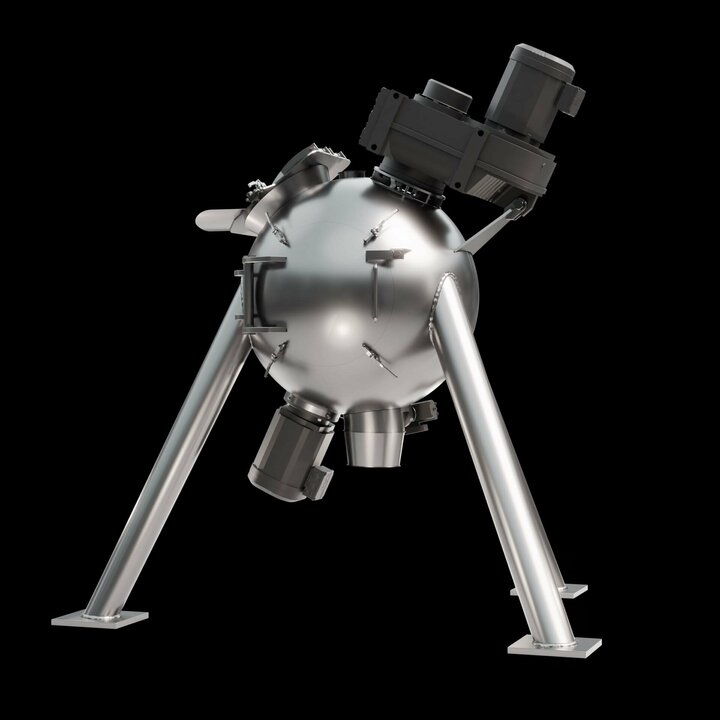 Spherical mixing chamber: The spherical design offers a reduced surface area, which minimises friction and enables shorter mixing times. This results in lower energy consumption and increases the efficiency of the mixing process.